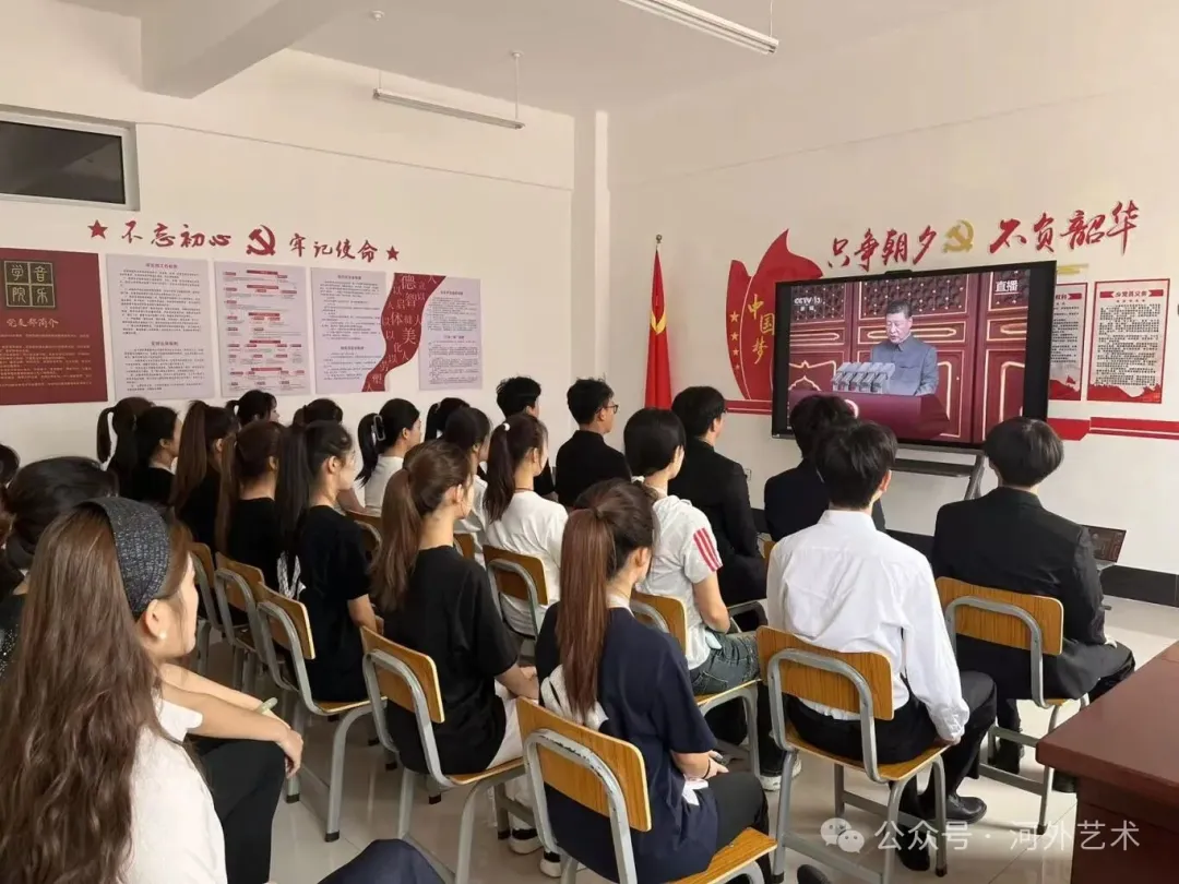 战旗猎猎,坦克轰鸣,战鹰翱翔。最帅天团,步伐铿锵,气宇轩昂!9月3日,一场彰显和平与纪念的盛大阅兵在北京天安门广场举行。河北外国语学院国际艺术学院迅速响应,精心组织全体师生以线上的形式,共同观看这一极具历史价值的活动,让师生们跨越时空,感受历史与现实的交融,在铭记中汲取奋进力量。