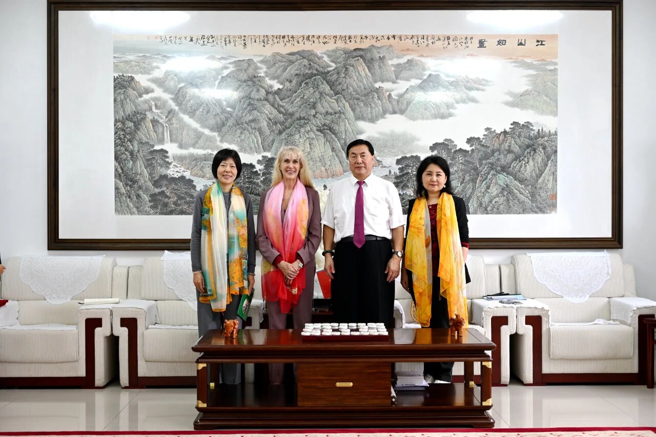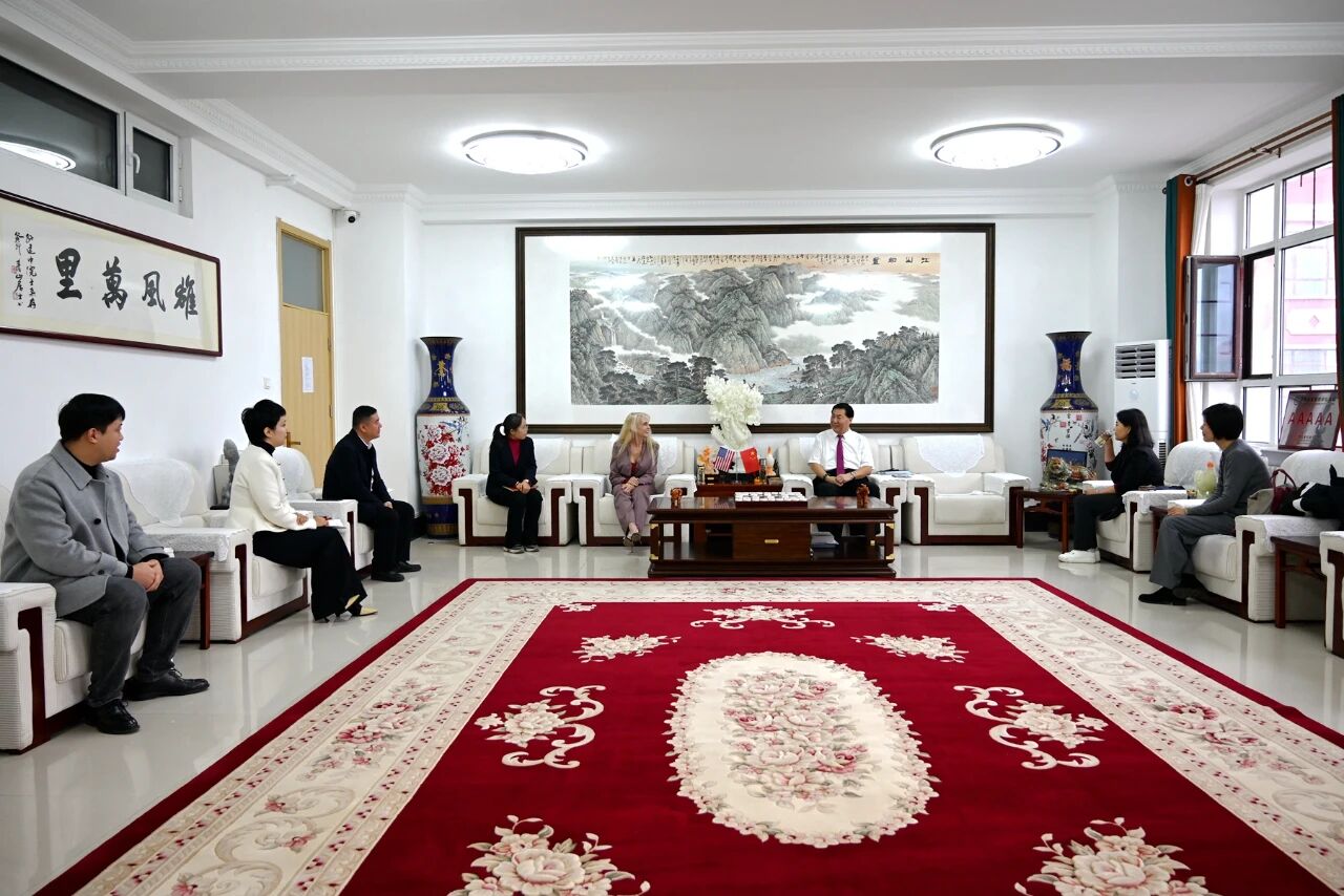 此次到访的美国西崖大学代表团领导有全球事务副校长兼院长朱莉·卡罗琳·奇安乔、首席学术官兼学术事务副校长王英·艾弗森、中国项目协调负责人孙杰。河北外国语学院董事长、校长孙建忠院士热情接待代表团,双方就办学理念、学科建设、人才培养等议题展开深入交流。