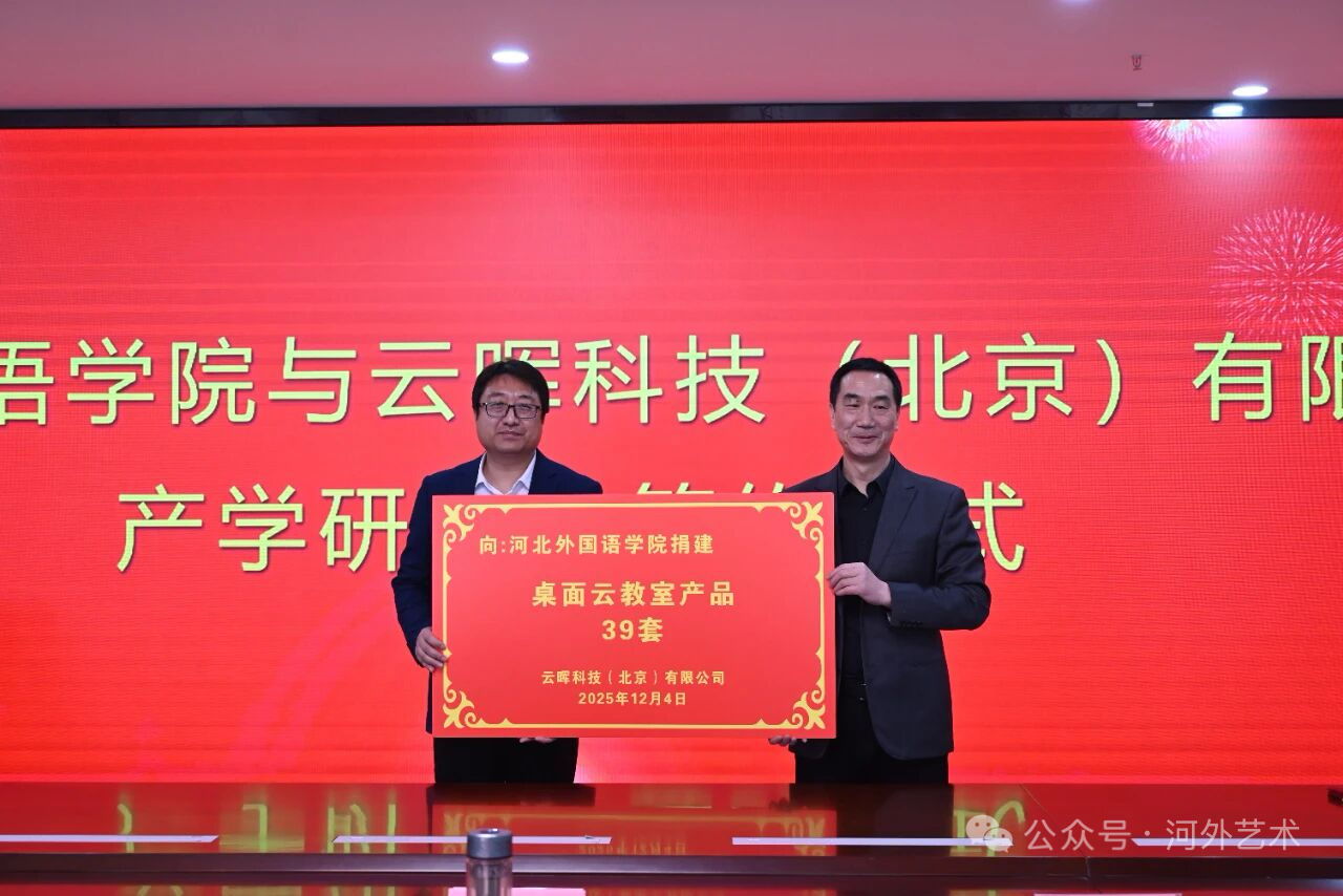 12月4日,河北外国语学院与北京云晖科技有限公司产学研合作签约仪式在河北外国语学院大中华536会议室顺利举行。
