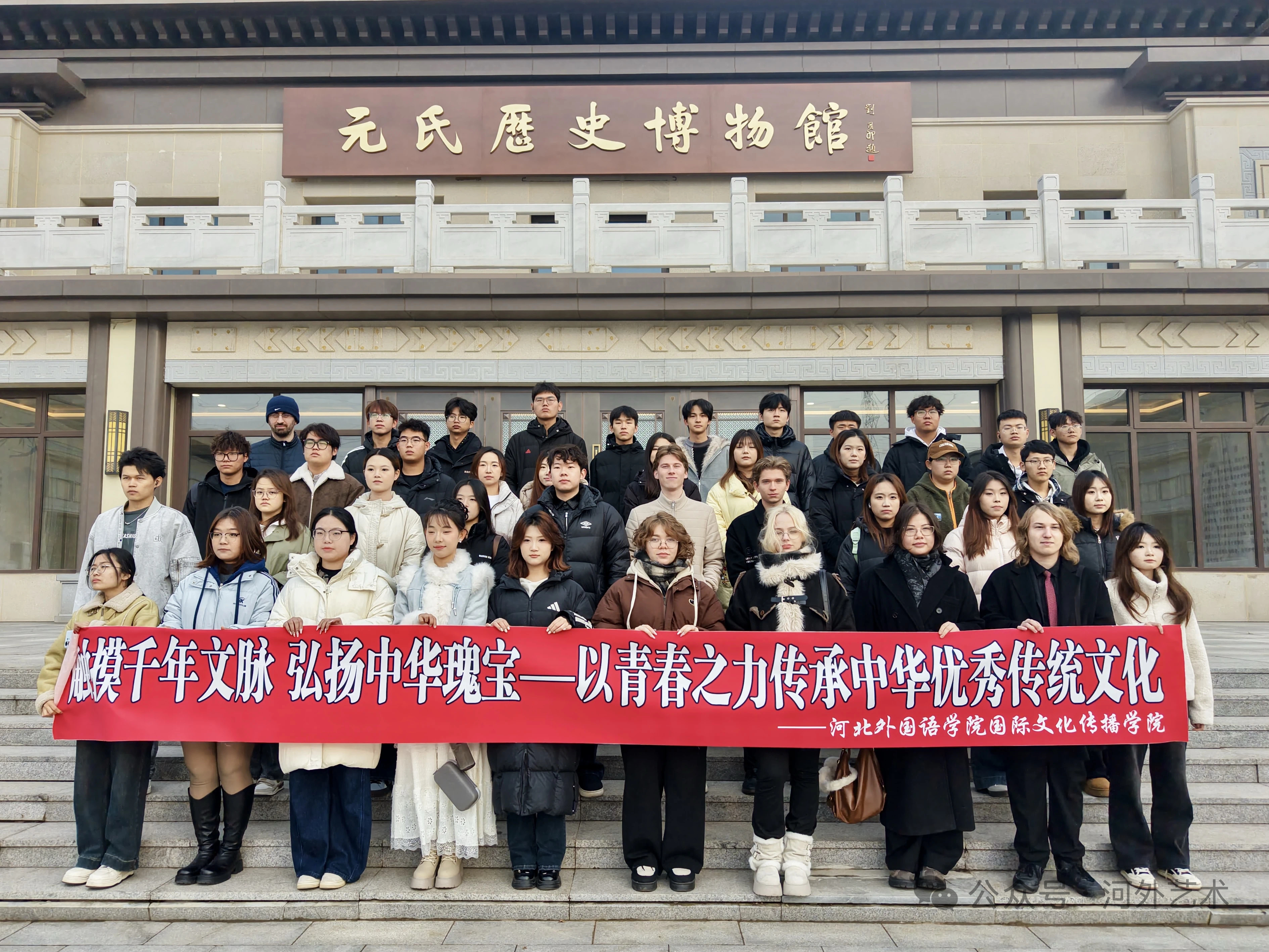 为传承中华优秀传统文化,坚定文化自信,切实讲好中国故事、传播好中国声音,12月20日,由河北外国语学院国际文化传播学院、共青团元氏县委、元氏县文化广电体育和旅游局联合举办的“触摸千年文脉,弘扬中华瑰宝”主题社会实践活动在元氏县历史博物馆顺利开展。河北外国语学院8名留学生与40余名青年大学生共同参加活动,在博物馆专业讲解员的带领下,沉浸式领略元氏县跨越千年的历史底蕴,感受中华优秀传统文化的独特魅力。